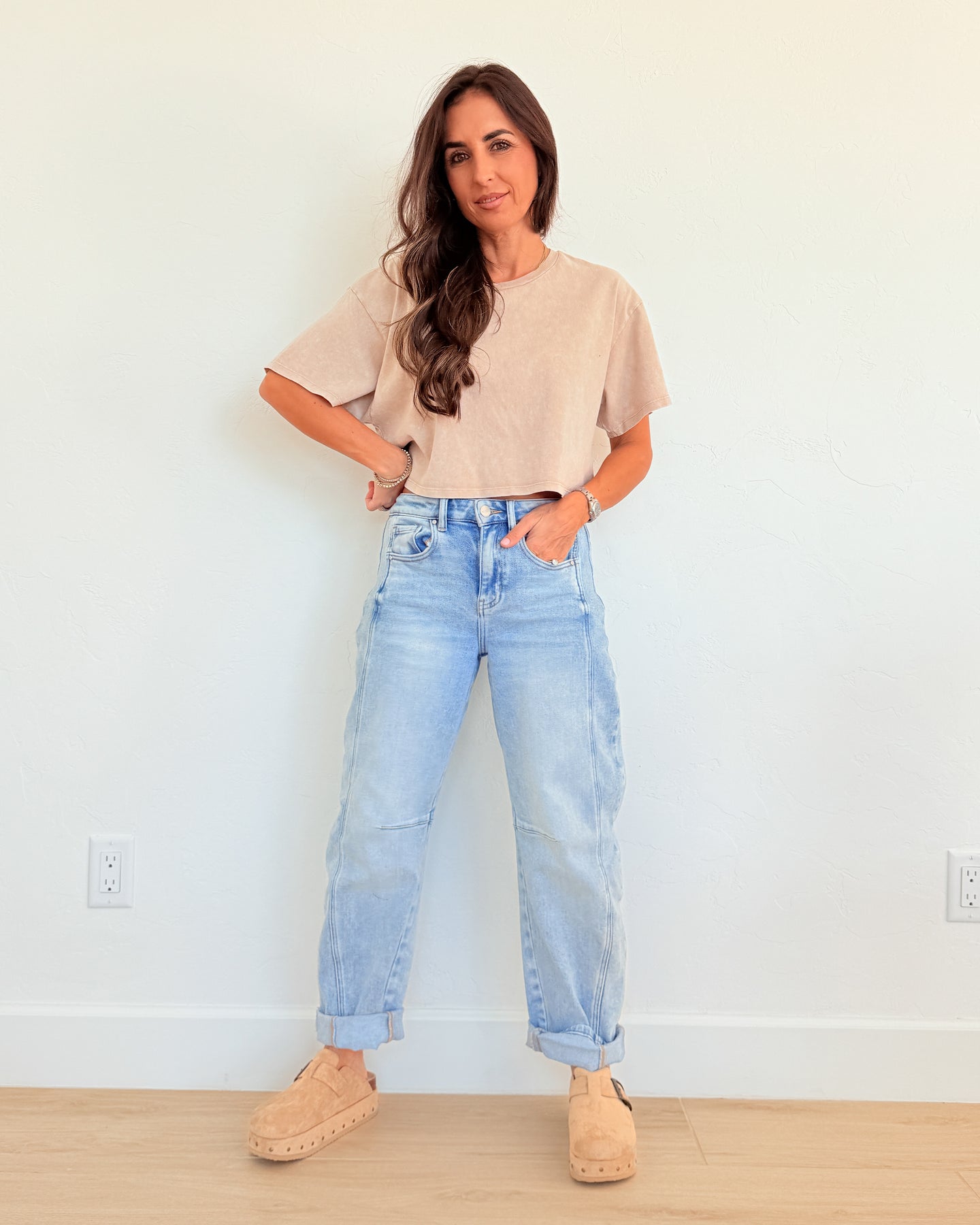 High-Rise Boyfriend Cuffed Barrel Jean