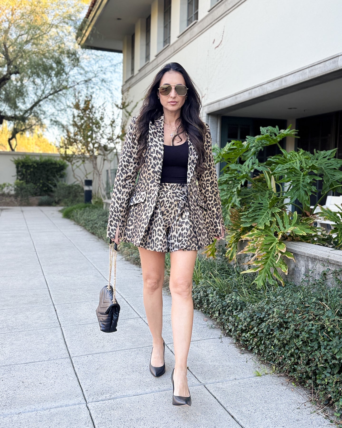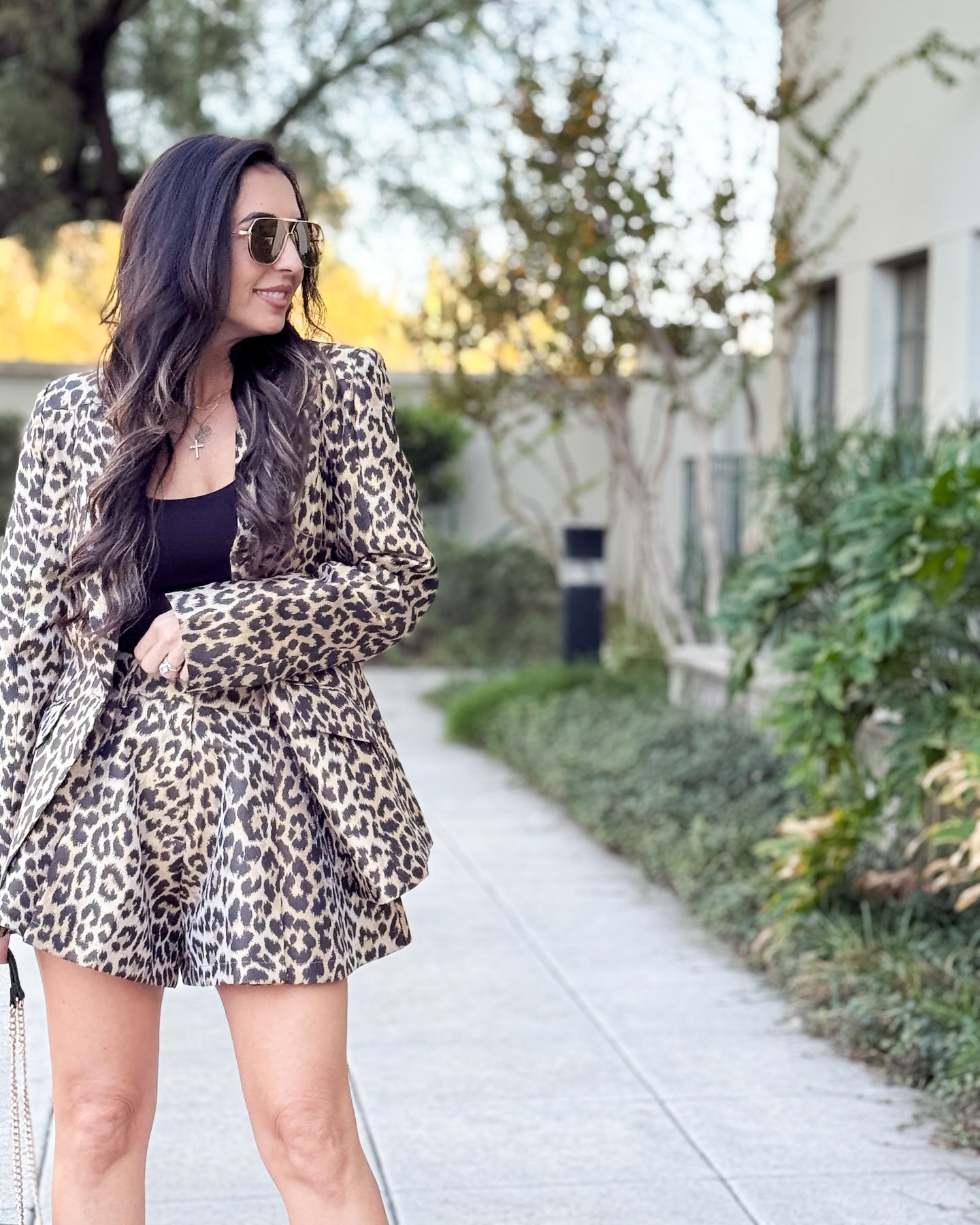 • Chic leopard jacquard print with a structured, tailored silhouette