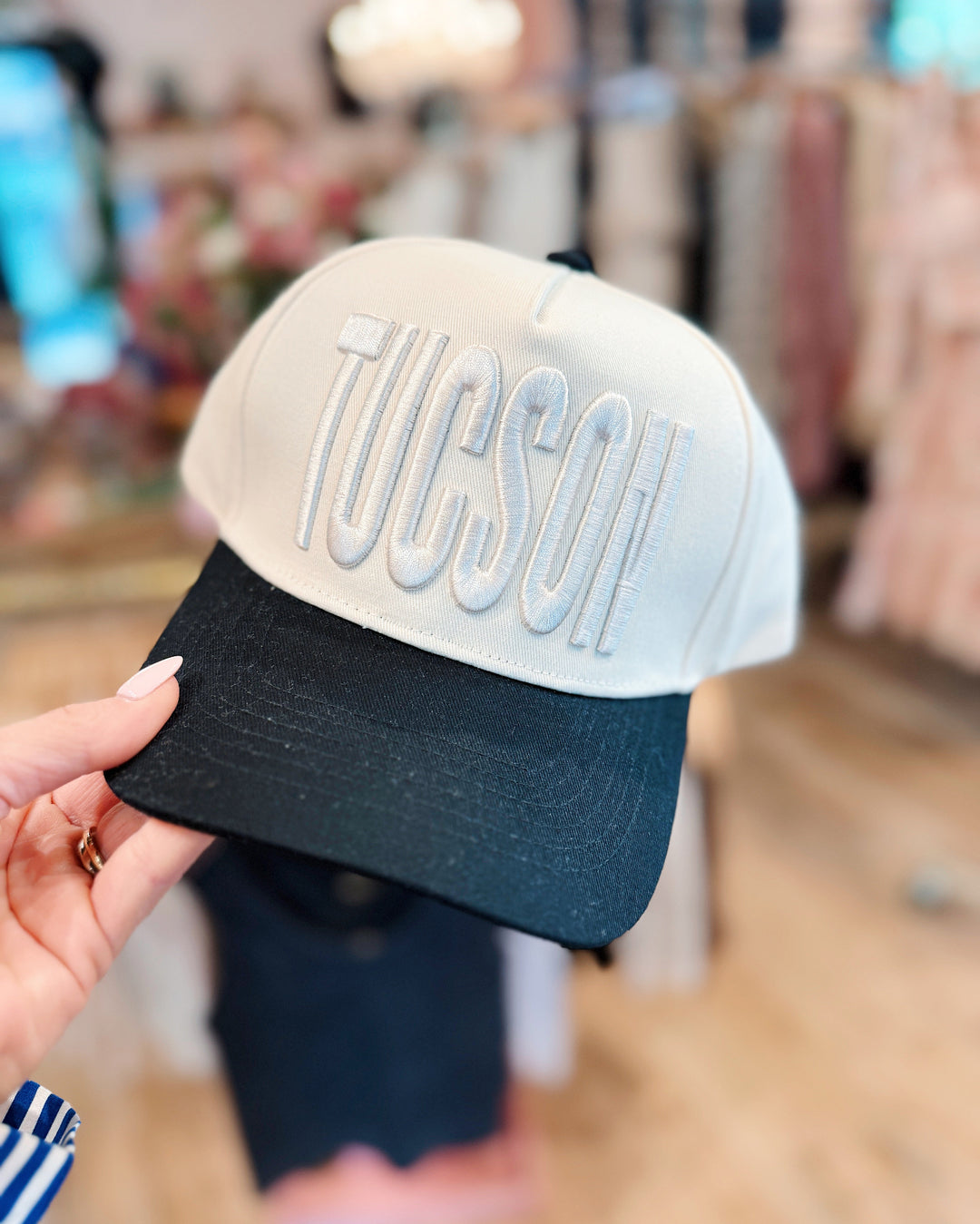 Contrasting black bill and snapback closure for a sleek, neutral look