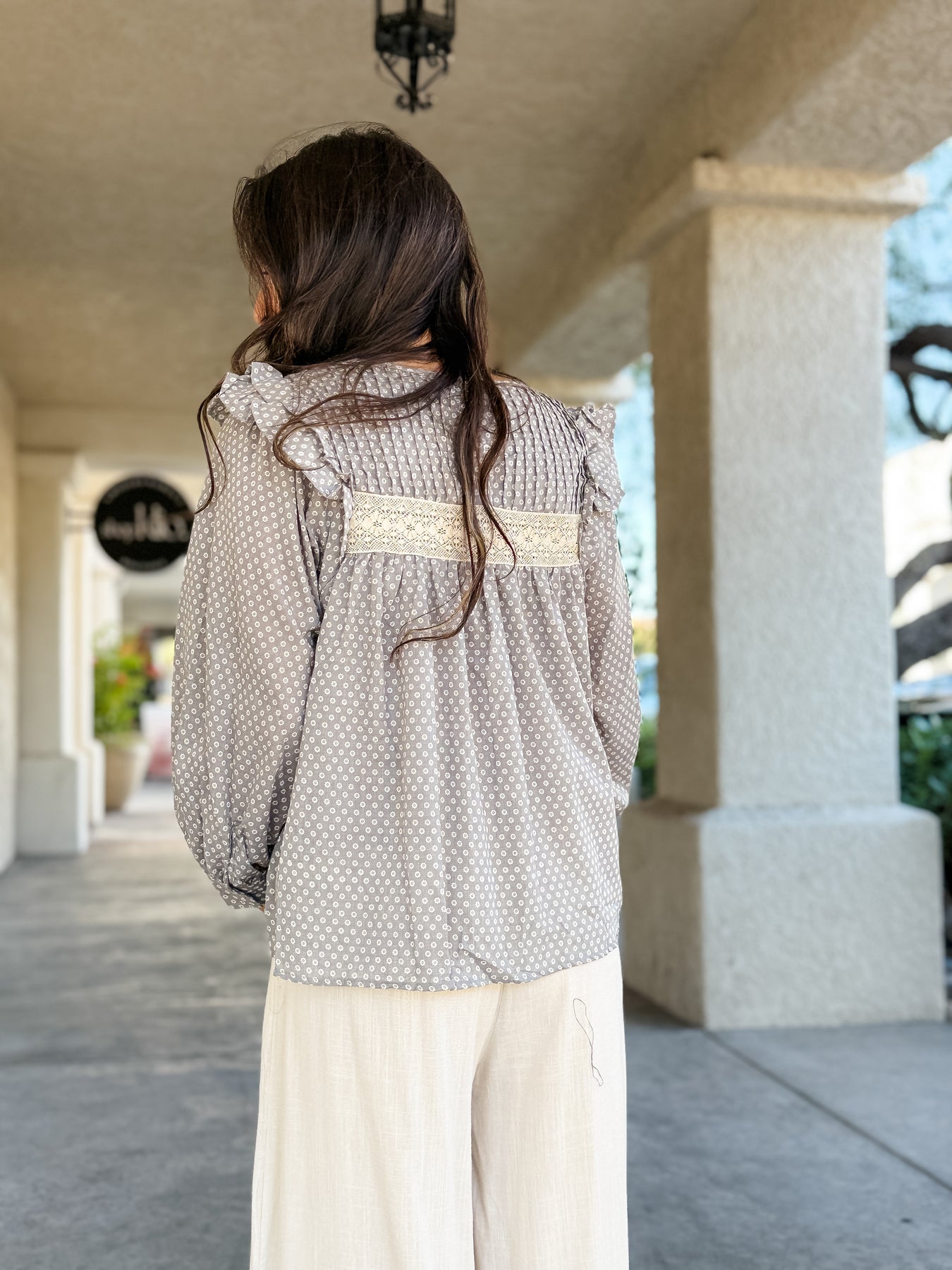 Subtle ruffle accents at the shoulders