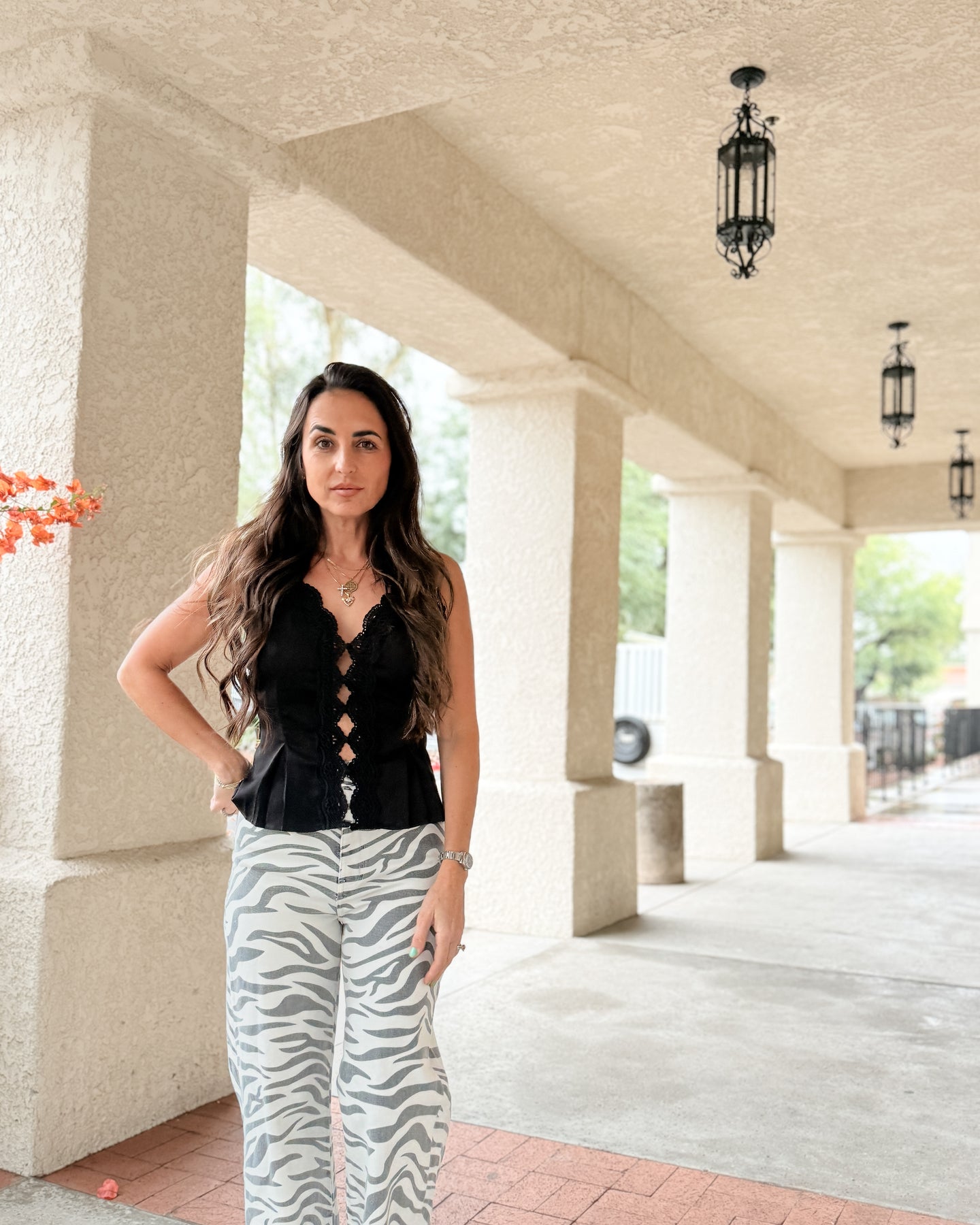 Intricate lace trim along the neckline and straps