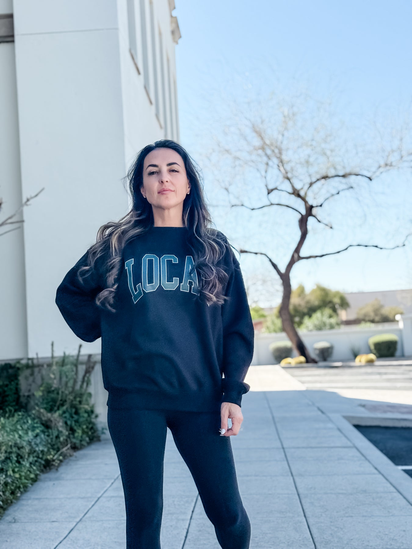 • Cozy fleece sweatshirt with a bold "LOCAL" print